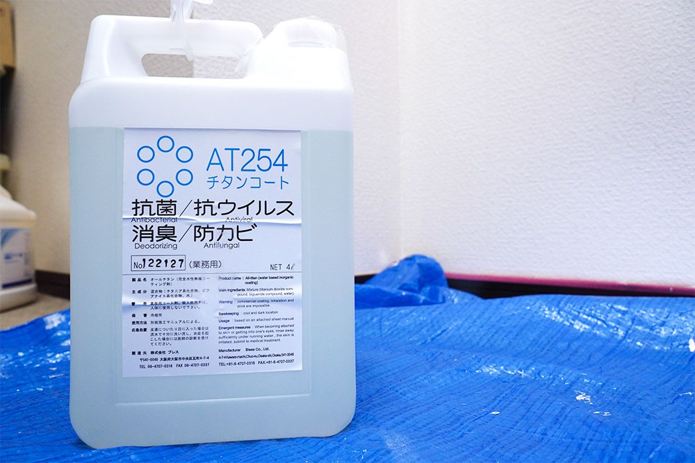 オールチタンAT254は水性完全無機コーティング剤という人体に害のない成分だから安心。公的機関で目や皮膚などへの刺激がないことも証明されているよ!