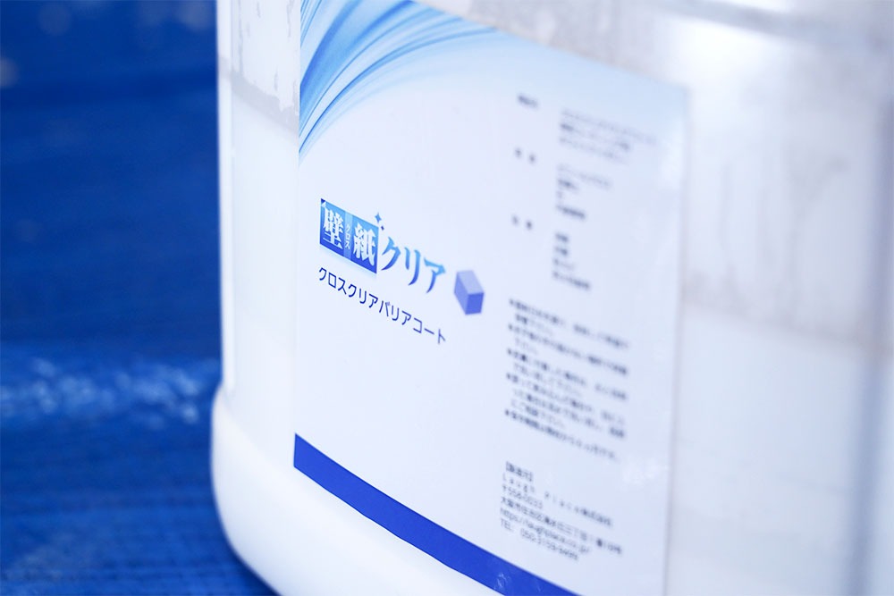 元の壁紙の質感を残すことができる塗料で、汚れは綺麗になり、新品のような仕上がりになるんだ。
